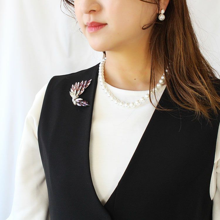 華やかで品のあるデザインのブローチ。幅広い年代に似合うデザインなので、セレモニーでの使用やギフトにもおすすめ。