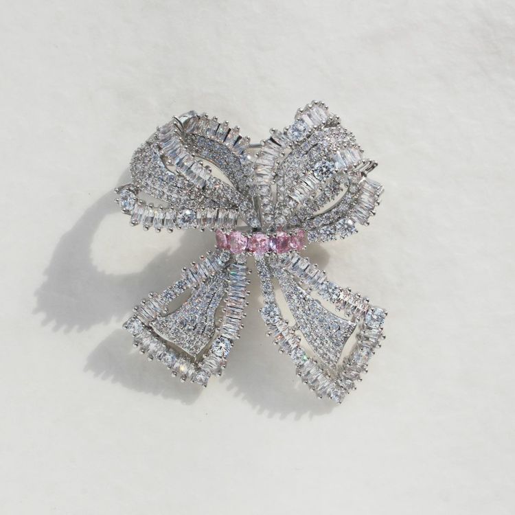 キュービックジルコニアリボンモチーフブローチ