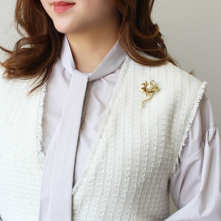 清らかで逞しいハスの花のようなフラワーモチーフブローチ。花びらの内側はセミマット加工を施し、艶あり部分との対比が美しく、本物の花びらのような質感に。中心にはキュービックジルコニアと淡水パールをあしらい、華やかさとエレガンスをプラス。デイリーカジュアルから冠婚葬祭のフォーマルまで、幅広いシーンにご使用いただけるデザインです。