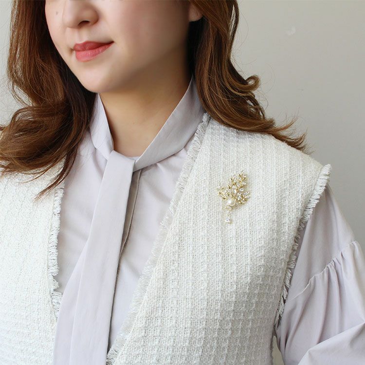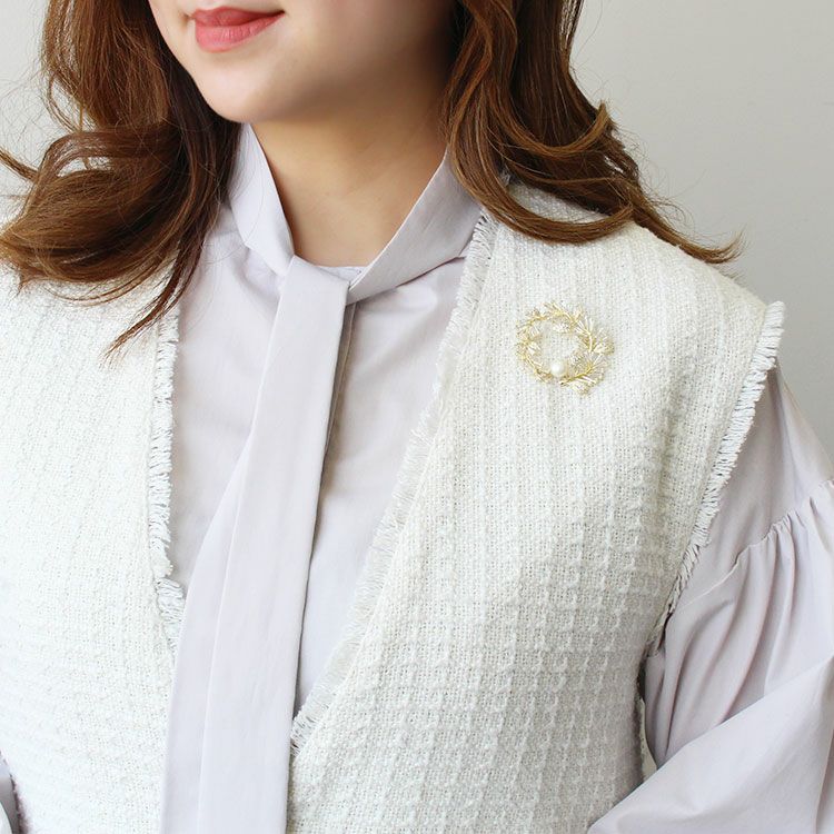 キュービックジルコニア×淡水パール リースモチーフブローチ