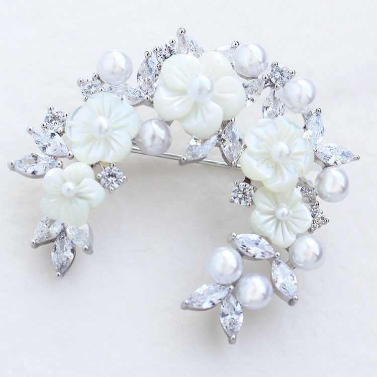 キュービックジルコニア×シェルパールハーフムーンブローチ