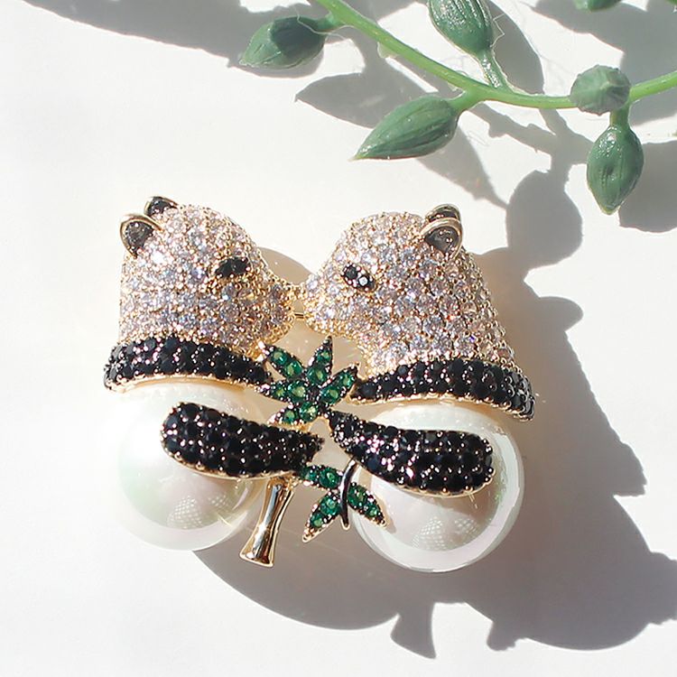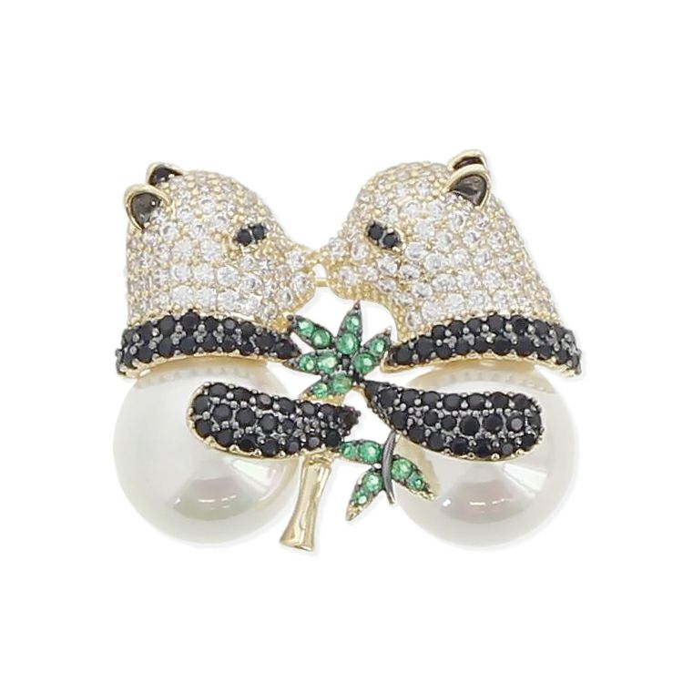 2匹のパンダがキスをしている愛らしいデザインブローチ。煌めくキュービックジルコニアとパールがあしらわれたエレガントなパンダです♪