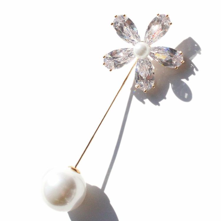 キュービックジルコニアフラワーモチーフピンブローチ/5181084