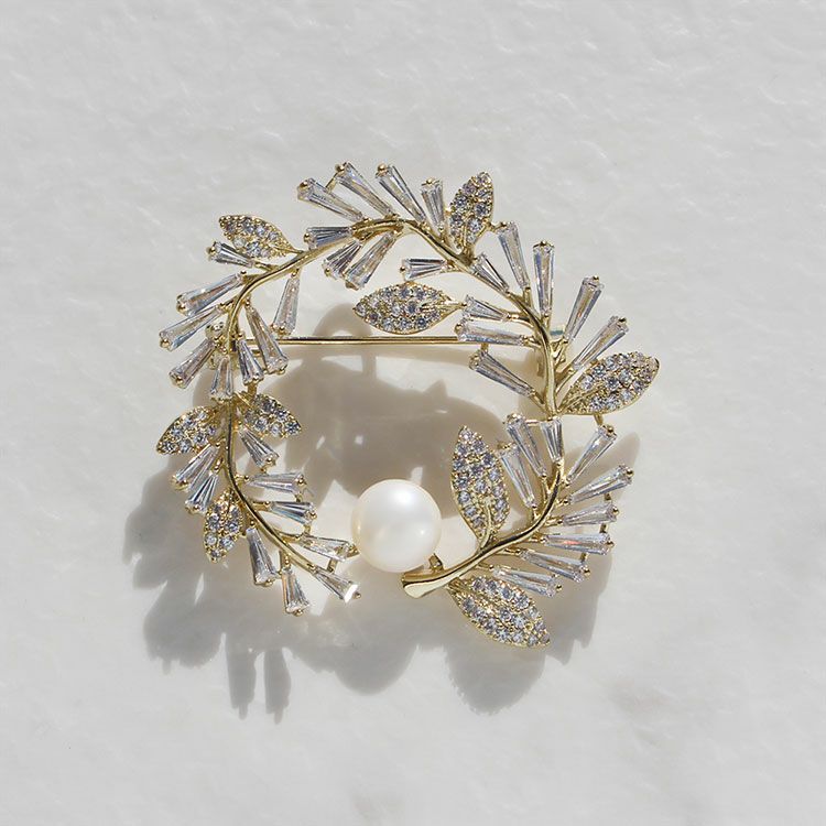 キュービックジルコニア×淡水パール リースモチーフブローチ