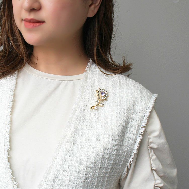 フラワーモチーフキュービックジルコニア×パールブローチ
