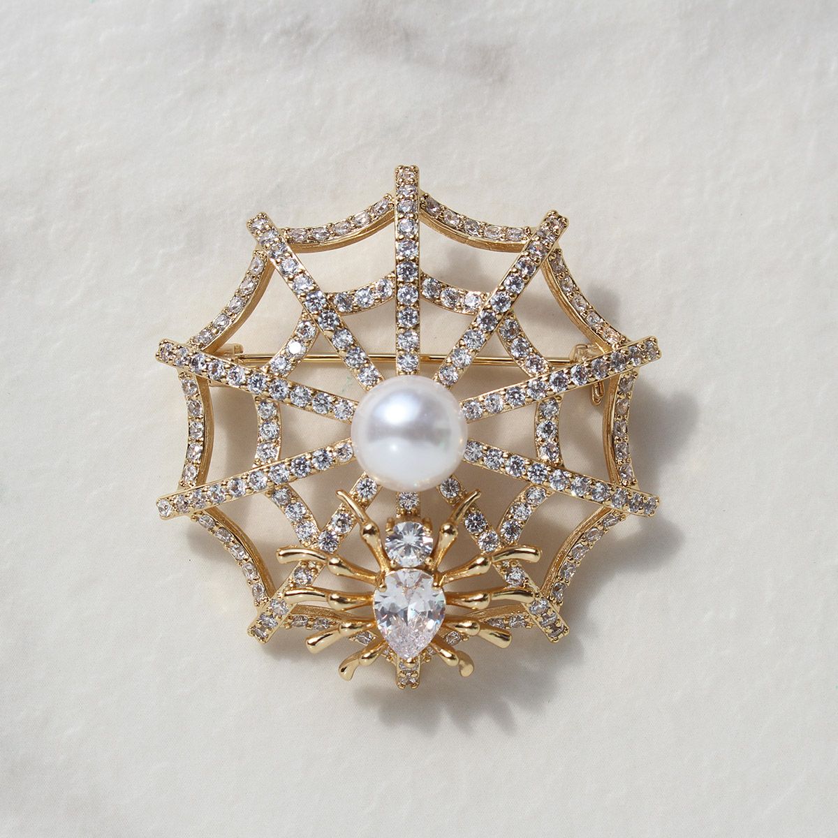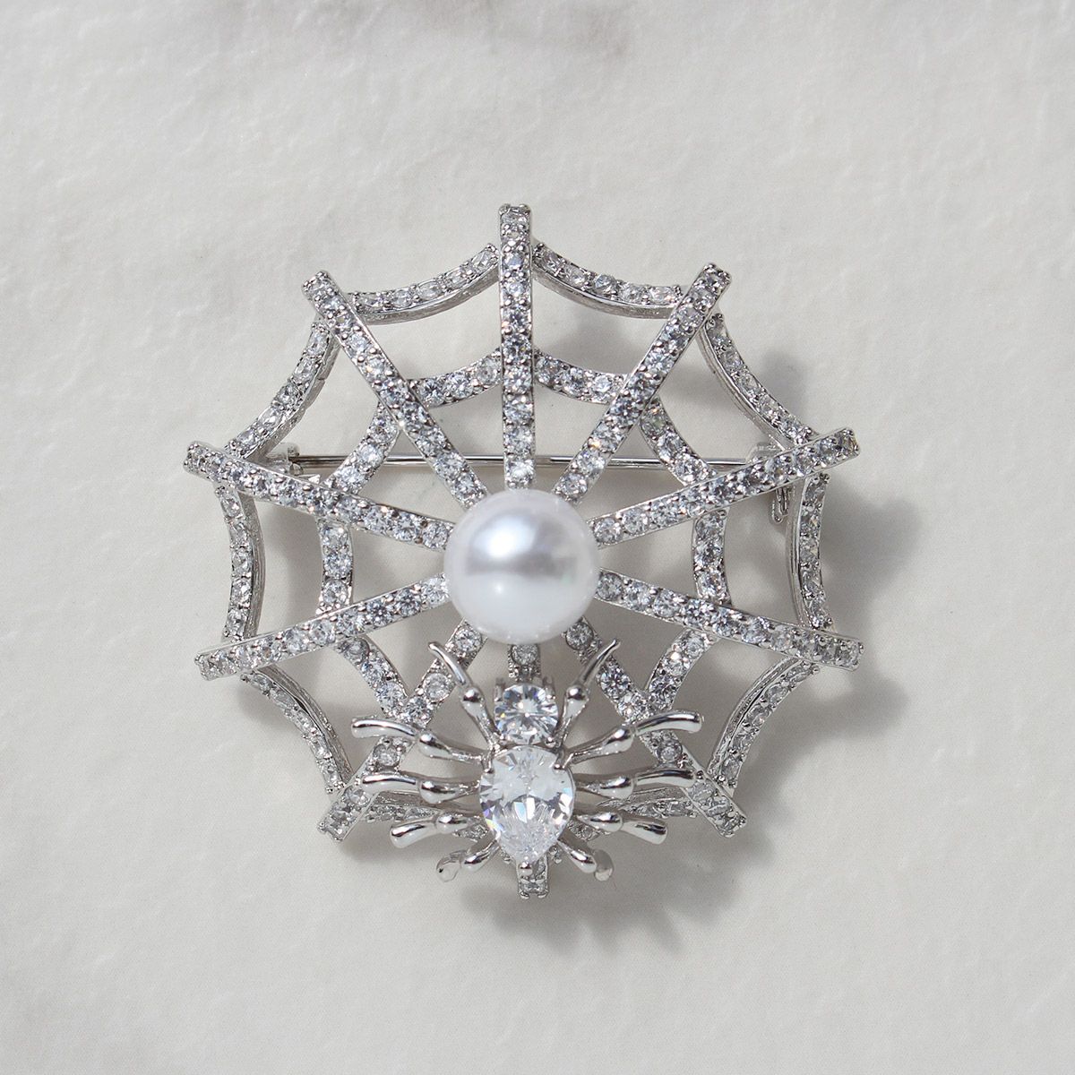 スパイダーウェブモチーフキュービックジルコニアブローチ