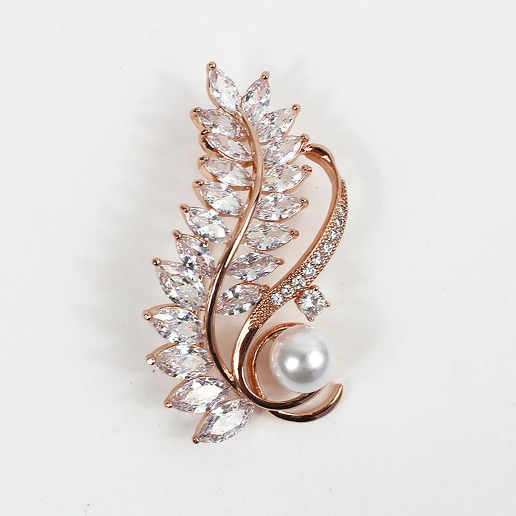 キュービックジルコニア×パールフェザーブローチ