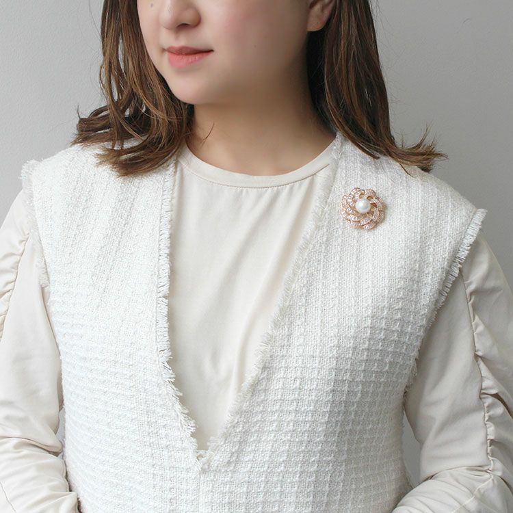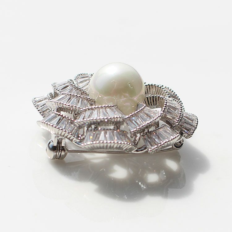 キュービックジルコニア×パールデザインブローチ/5181073