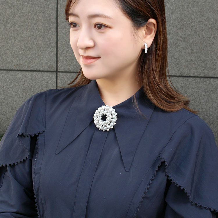 キュービックジルコニアが煌めく上品なブローチ。お花のようにあしらわれたパールがフェミニンなアイテムです。