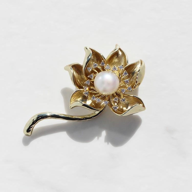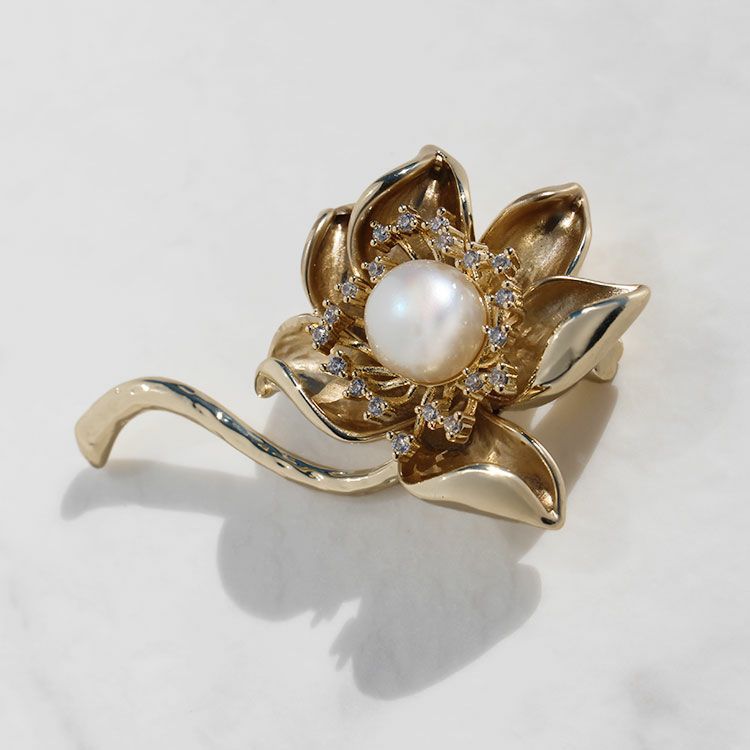 メタルフラワー×淡水パールブローチ