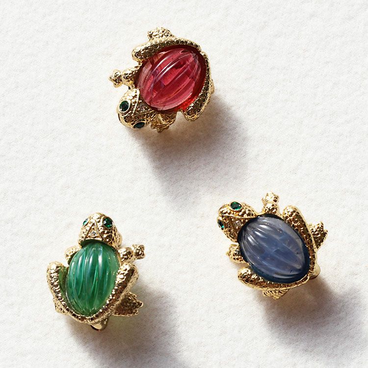 カメをモチーフにしたヴィンテージピンブローチ。質の高いヴィンテージならではの、損なわれない美しさと風格を実感していただけます。