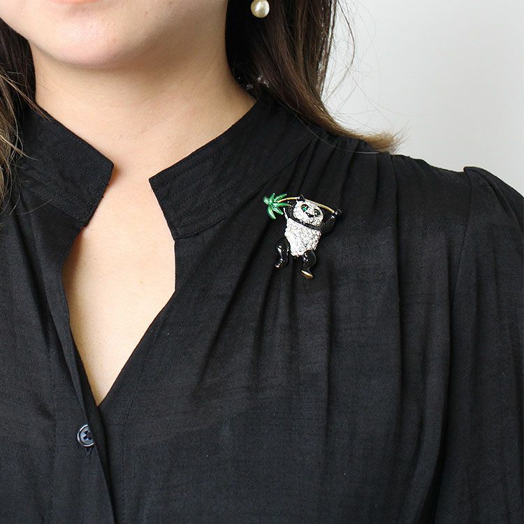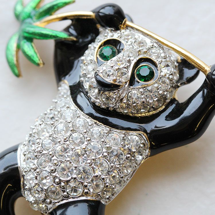 大好きな笹を手にしたパンダモチーフのヴィンテージブローチ。ヴィンテージならではの風合いと品質の高さにより、可愛らしくも風格のあるパンダを身に着ければ、大人ならではの遊び心を楽しめそう。
