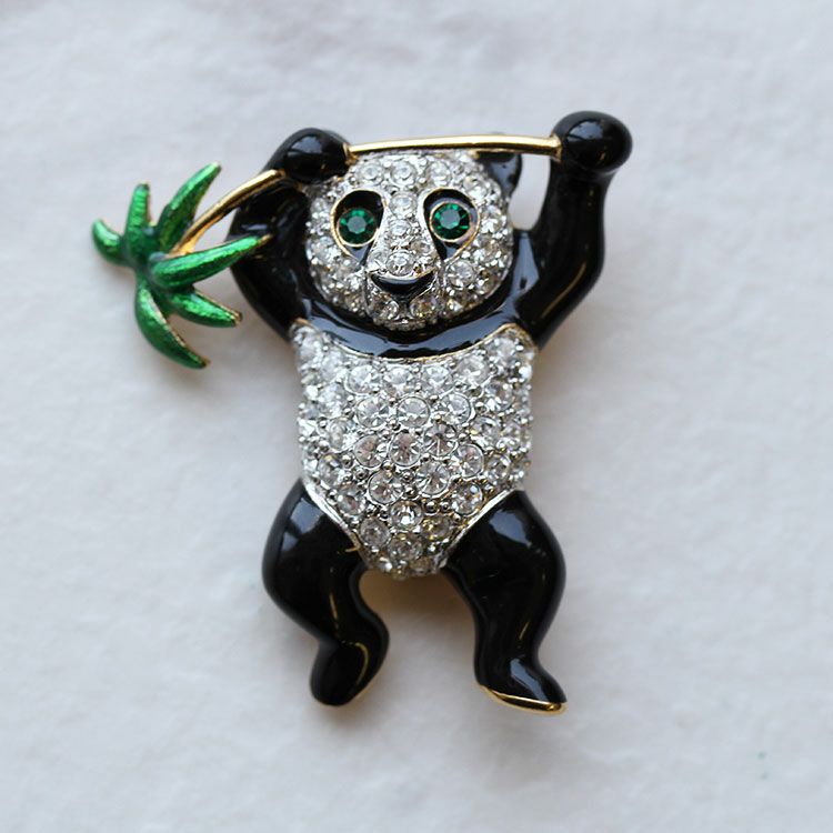 大好きな笹を手にしたパンダモチーフのヴィンテージブローチ。ヴィンテージならではの風合いと品質の高さにより、可愛らしくも風格のあるパンダを身に着ければ、大人ならではの遊び心を楽しめそう。
