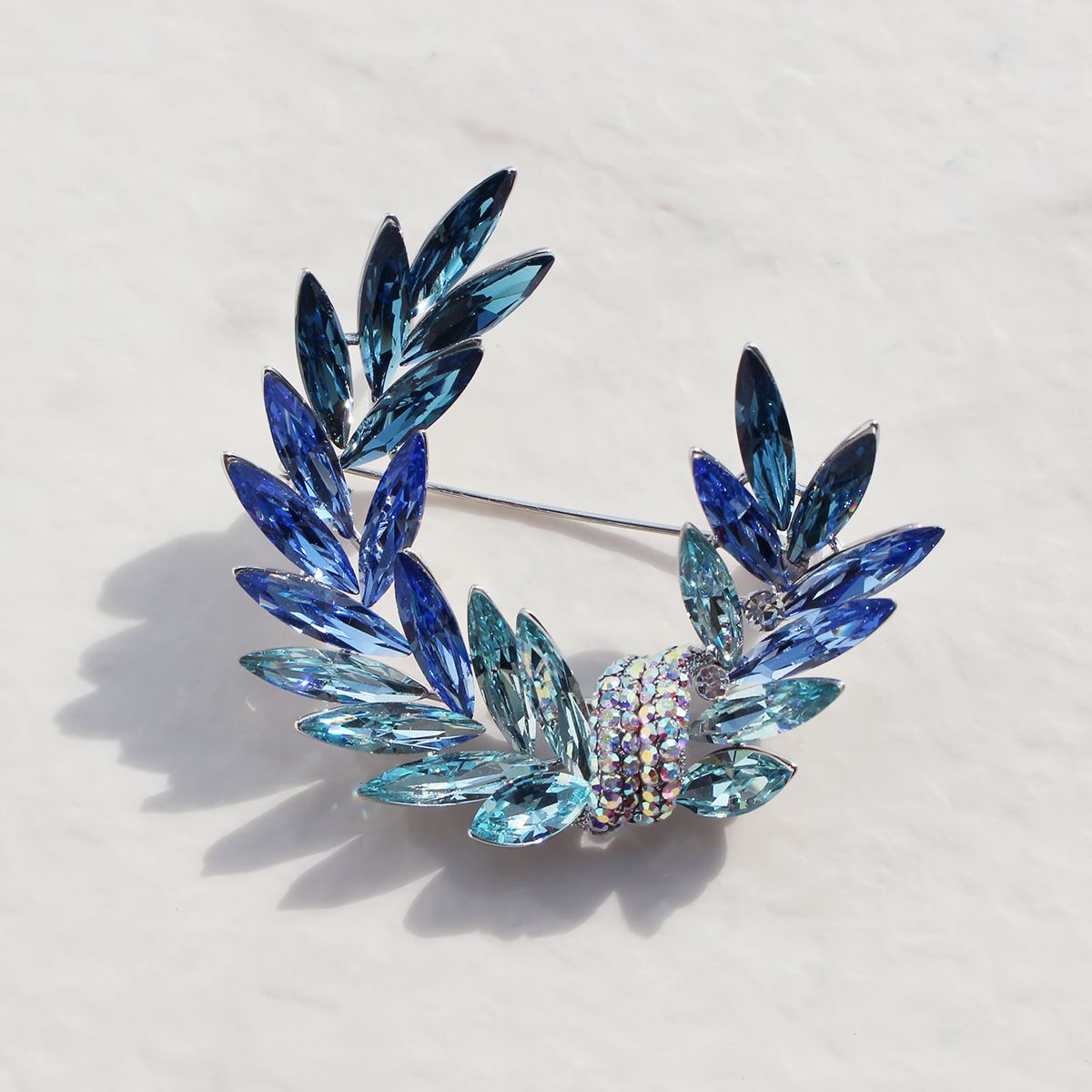 キュービックジルコニア×淡水パール リースモチーフブローチ