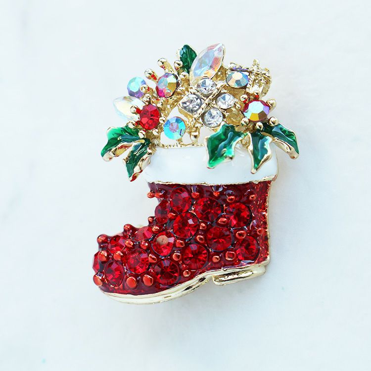 クリスマスブーツモチーフグリッターブローチ