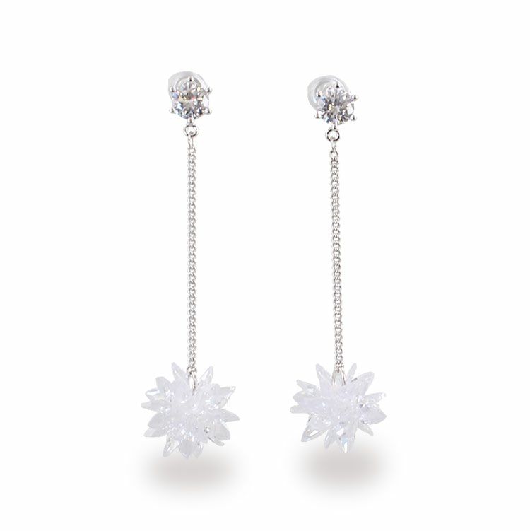 一粒のキュービックジルコニアとゆらゆら揺れる結晶モチーフが華奢ながら存在感を放ちます。