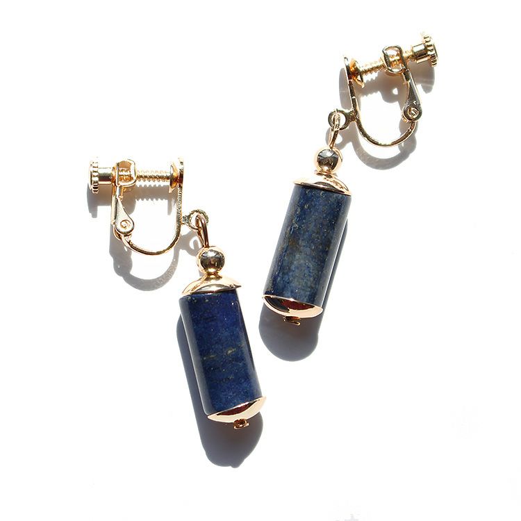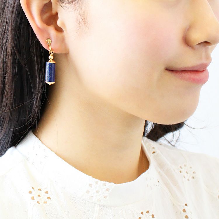 天然石のラピスラズリを使用した細長いシルエットが魅力的なイヤリング。