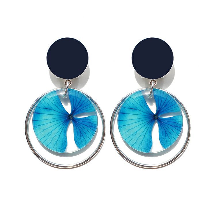 アジサイ押し花ラウンドメタルイヤリング/3020167