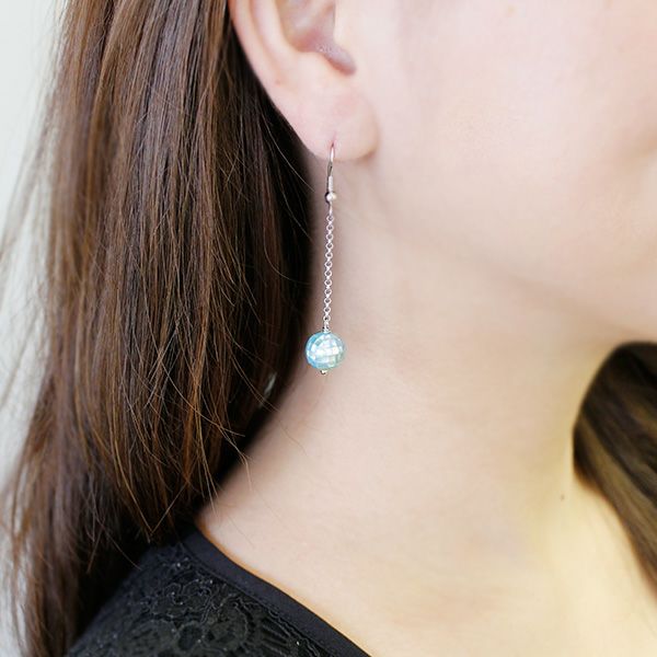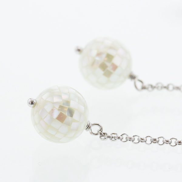 高品質の小さなシェルを1つずつハンドメイドでモザイク状に貼り付けたピアス。美しく輝くシェルを隙間なく丁寧に貼り付けた、職人の繊細な技術力で実現した高級感のある一品です。