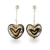 銀箔をガラスで閉じ込めるベネチアの伝統的な技法「ソンメルソ」に、ガラス棒で細く線を描く「ヴェッテ」という技法で表現されたハートモチーフのピアス。