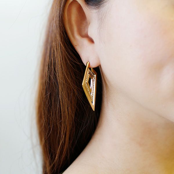 レクタングルデザインメタルフープイヤリング【GISELe 掲載】