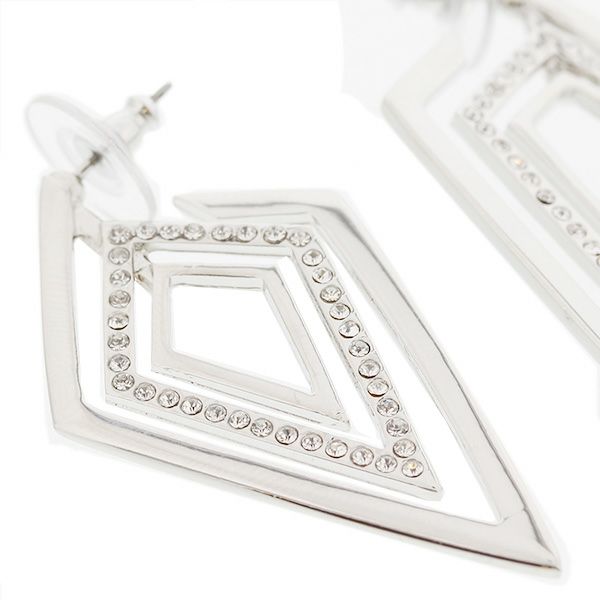 メタルとクリスタルガラスで作られた個性派辛口ピアス。正面から見たときはシンプルなメタルの線形を見せることができ、横から見たときは、クリスタルガラスが輝いて華やかさを演出することが出来ます。