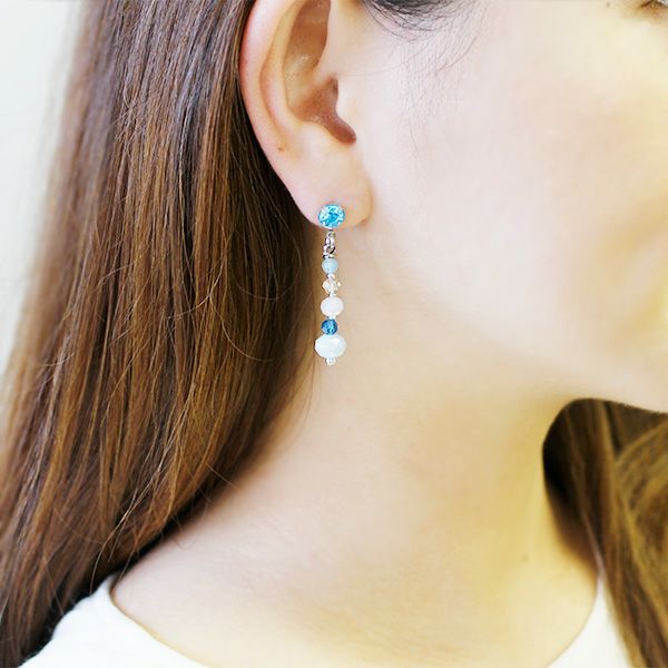 ブルー系のビーズでまとめた爽やかなピアス。