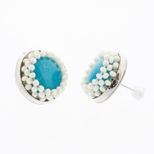 染アゲートをニットビーズで囲んだシンプルなピアス。