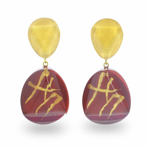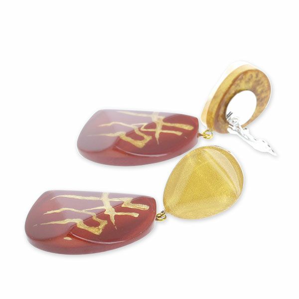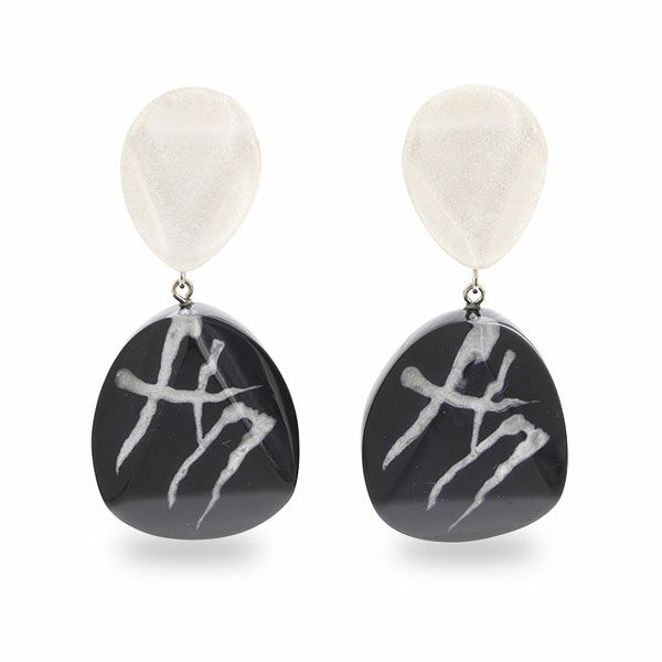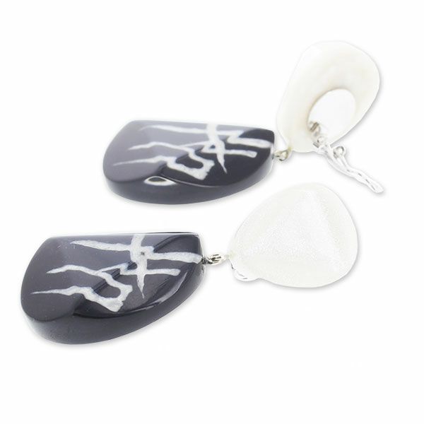 ギリシャ文字を想起させる幾何学模様のパーツと、ラメの輝きが上品なマーブル模様のパーツを組合せた、神聖なイメージのシリーズ。深みのあるカラーと幾何学模様のモチーフがシックで大人の印象に。手作業で1点1点仕上げたこだわりのアクリルジュエリー。ハンドメイドならではの魅力をお楽しみください。