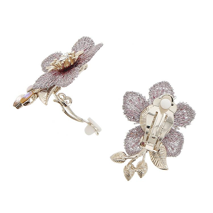 メッシュフラワーモチーフクリスタルガラスイヤリング/3191001