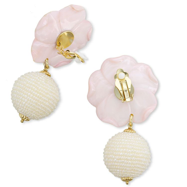まるで本物のお花のような華やかなデザインのイヤリング。 白蝶貝で作られた花びらは貝独特の艶感を演出します。 シンプルなコーディネートに、お出かけの時に、様々なシーンで着用頂けます。