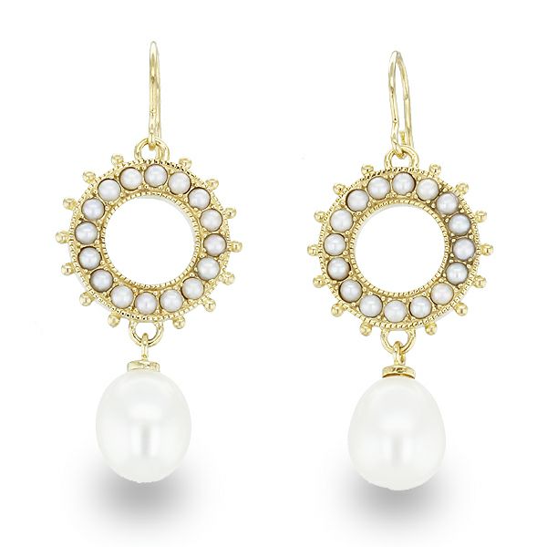 大小の淡水パールがあしらわれた、女性らしいエレガントなピアス。年代を問わず親しまれるデザインはプレゼントにも最適です。