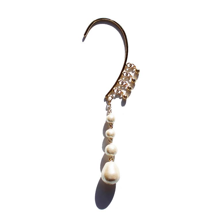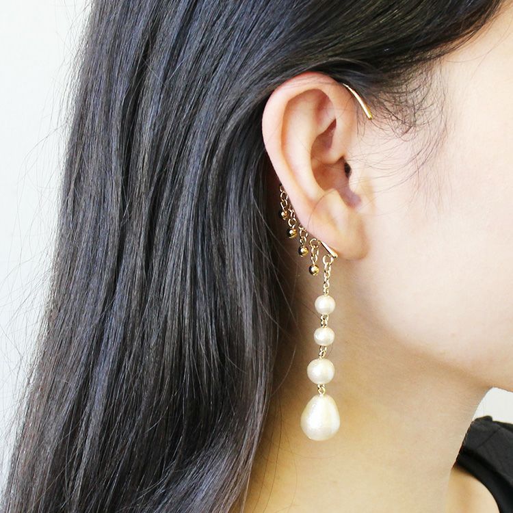 耳たぶの後ろからさりげなく覗くコットンパールが個性をプラスしてくれるイヤーフック。