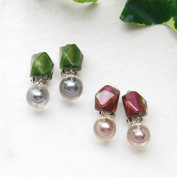 すべてのパーツをハンドメイドで作っているため、同じパーツは2つとありません。上質な樹脂、ポリエステルレジンの特性を活かし、ガラスのような質感を再現しつつも、軽くてつけやすいことで人気を博しています。