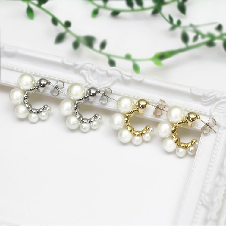 ホワイトプラスチックパール、エコフレンドリー亜鉛合金(シルバー:1-1.2ミルロジウム)、(ゴールド:1-1.2ミルゴールド)、ポスト:ステンレススチール