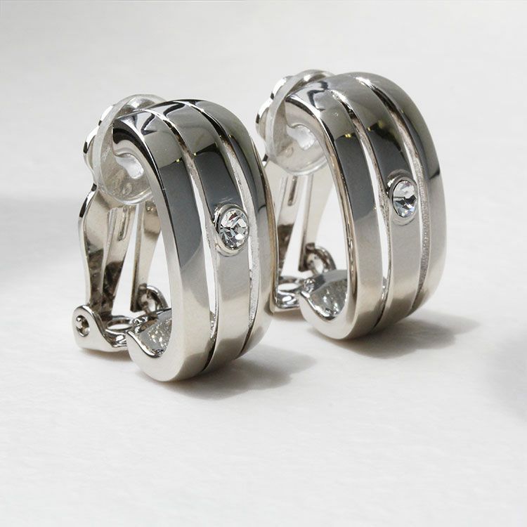 シーンや年代を選ばずご愛用いただける、シンプルなデザインの地金イヤリング。中央のクリスタルガラスが華やかさをプラスしています。
