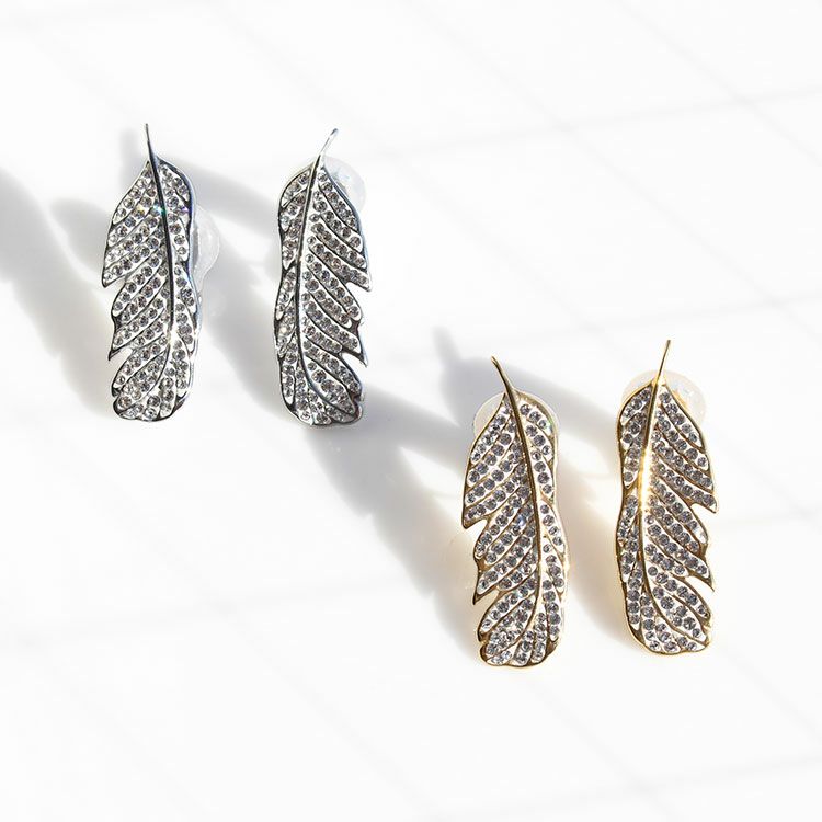 チェコクリスタルフェザーモチーフデザインイヤリング