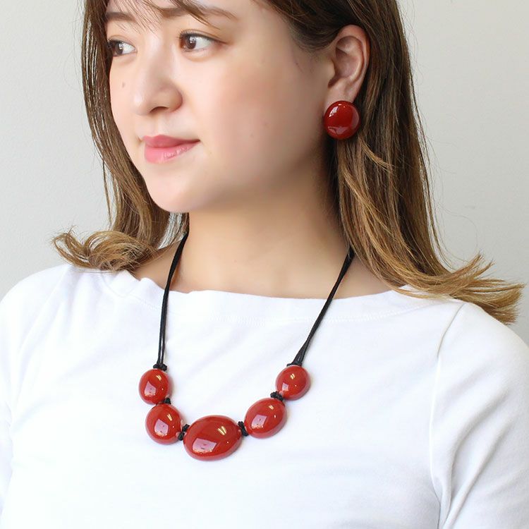 着けるだけで元気になりそうな落ち着いた赤いパーツが上品なイヤリング。