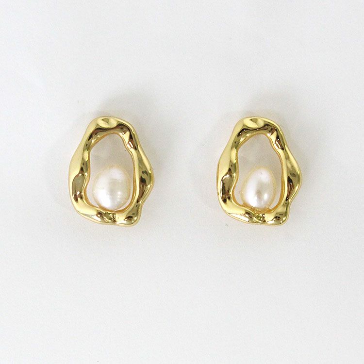 淡水パールメタルフレームデザインピアス