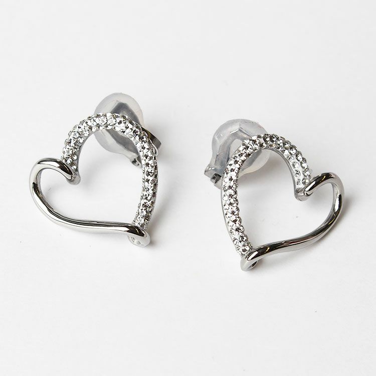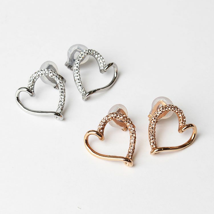 くるっとひねった片側にチェコクリスタルがパヴェ状に敷き詰められたオープンハートのデザインイヤリング。メタルとのコンビネーションがかわいくなり過ぎず、お顔まわりに華やかな煌めきをあたえてくれます。ステンレス素材を使用しているので変色しづらく季節を問わずつけやすいのが特徴。女子会やお買い物はもちろん、オフィス使いやオケージョンシーン、パーティーシーンにもおすすめです。