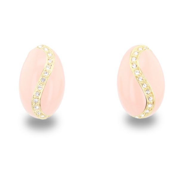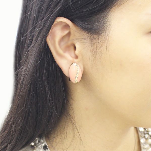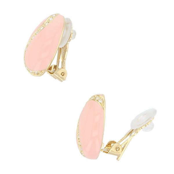 エナメル塗りのカラーイヤリング。柔らかな曲線にはクリスタルガラスがあしらわれ、さりげない輝きをプラスします。