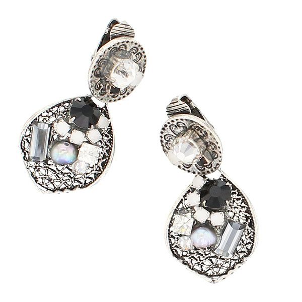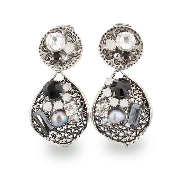 デザインメタルにクリスタルガラスをあしらったイヤリング。エレガントな装いにも、カジュアルスタイルにもマッチします。