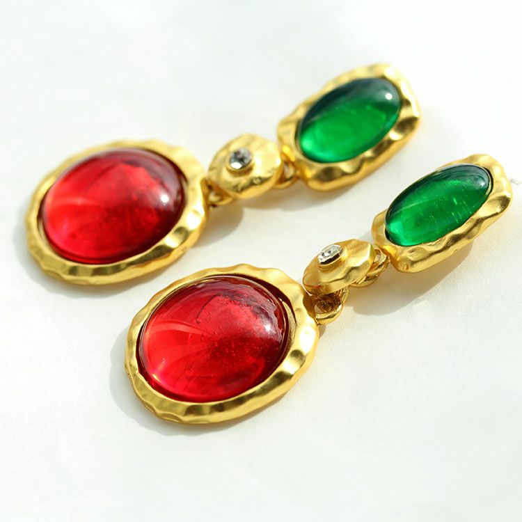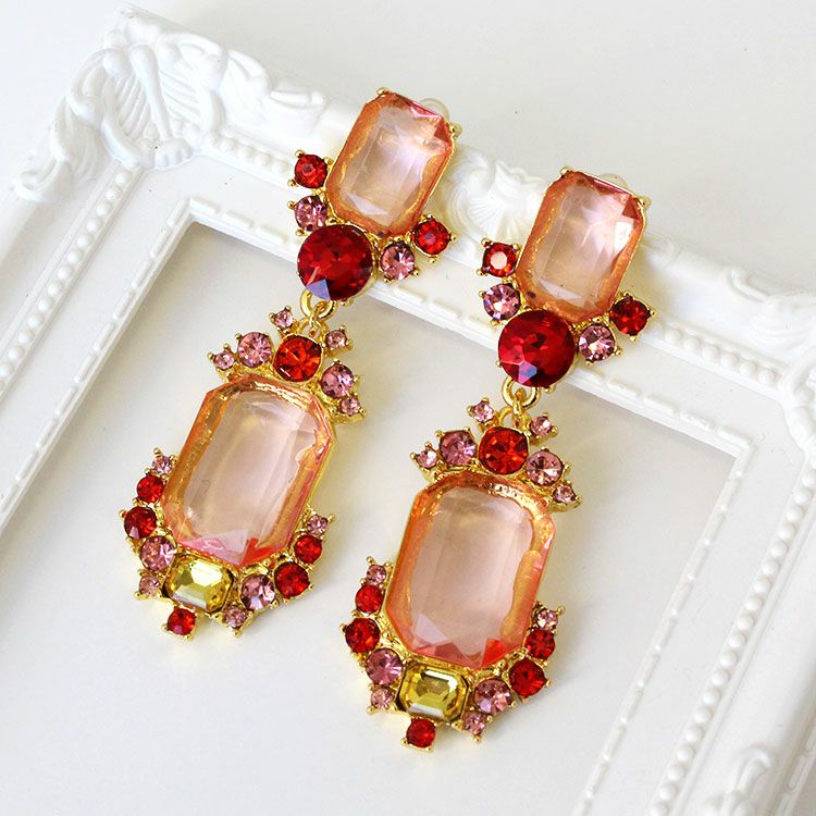 アンティーク調ビジュースクエアロングピアス