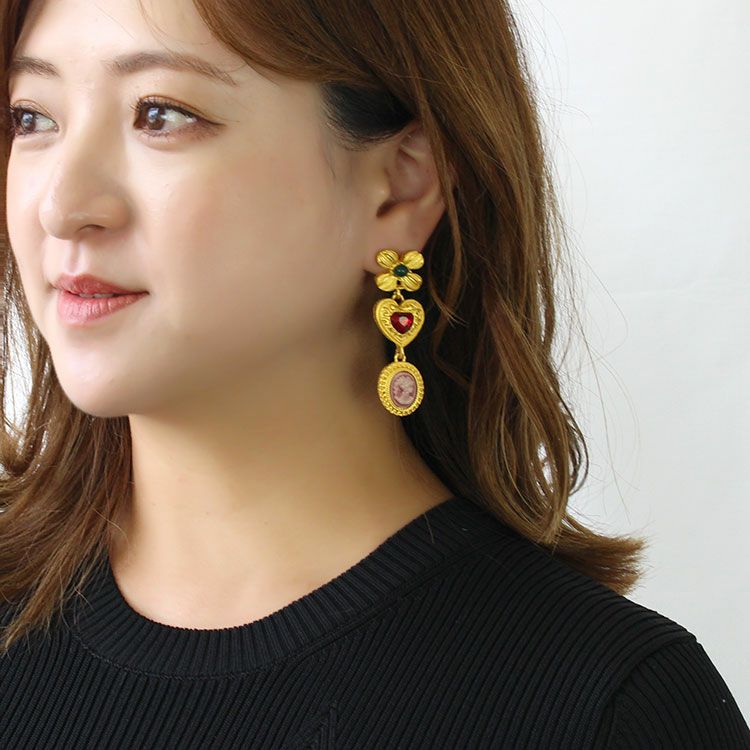アンティーク調カメオデザインロングピアス
