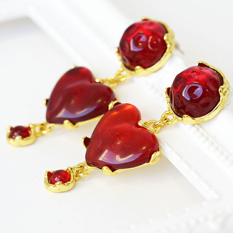 アンティーク調ハートデザインロングピアス