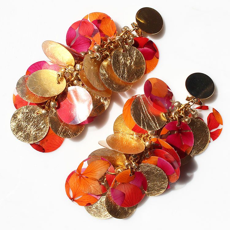 アジサイ押し花ラウンドボリュームイヤリング/3020170