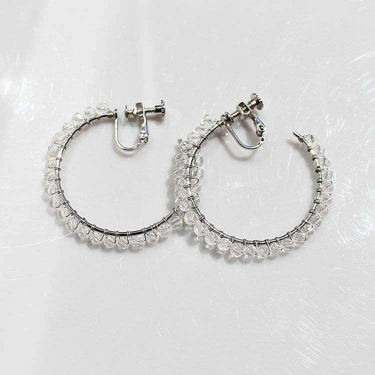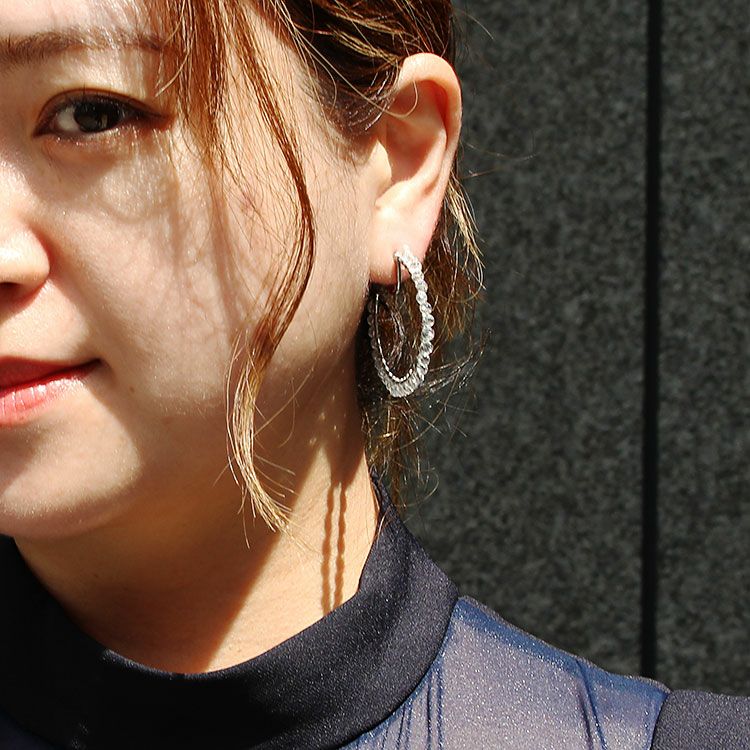 クォーツの中でも無色透明で純度の高い天然クォーツを使用したロック・クリスタル(本水晶)のフープイヤリング。