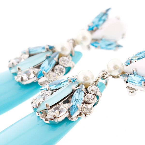 ティアドロップ型のパーツに大粒のクリスタルガラスをあしらったビジューイヤリング。