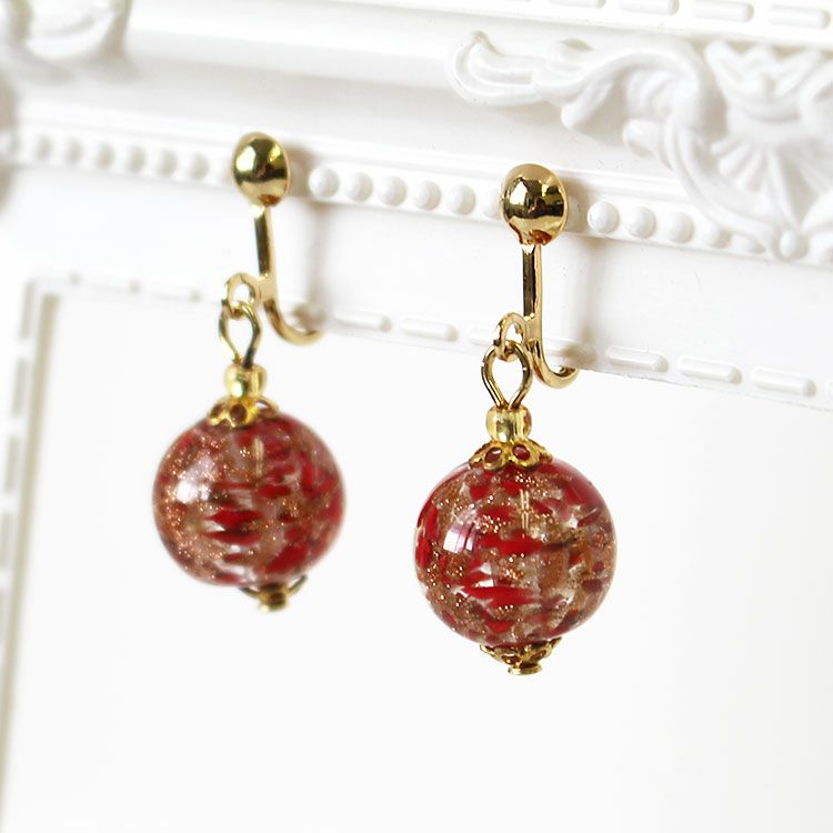 金属の粒子が細かいラメ状の煌めきになって漂う、イタリア・ムラーノ島で生み出された伝統的技法のビーズを使用したイヤリング。ゆらゆらと漂う唯一無二の模様は、職人が作り出すガラス製品ならではの美しさです。