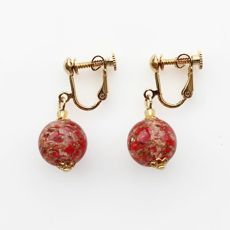 ベネチアンガラスアヴェンチュリーナビーズイヤリング
